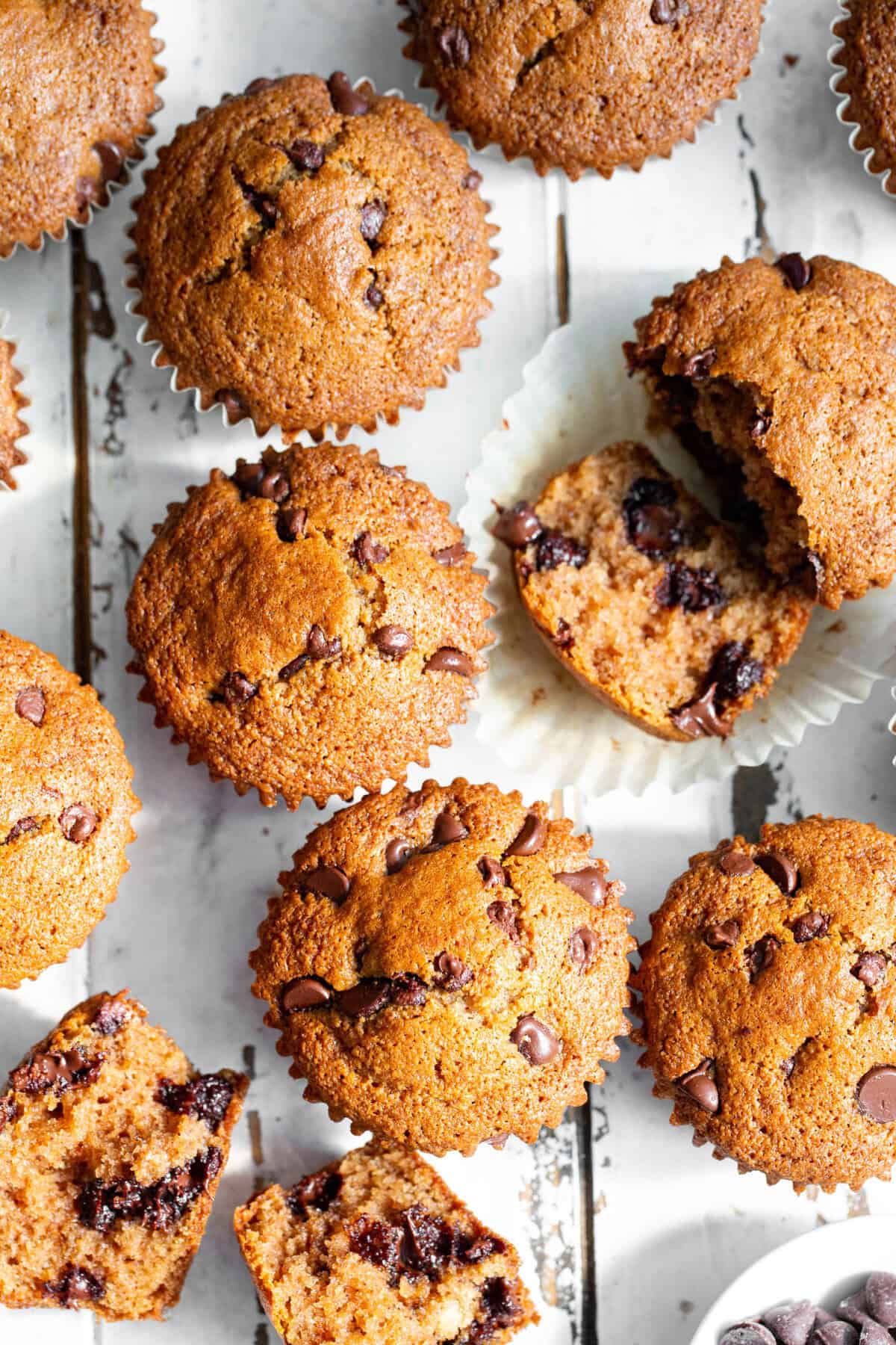 Soft, moist almond flour chocolate chip muffins made in one bowl! These healthy, gluten-free muffins are easy to make and perfect for breakfast, snacks, or meal prep.
