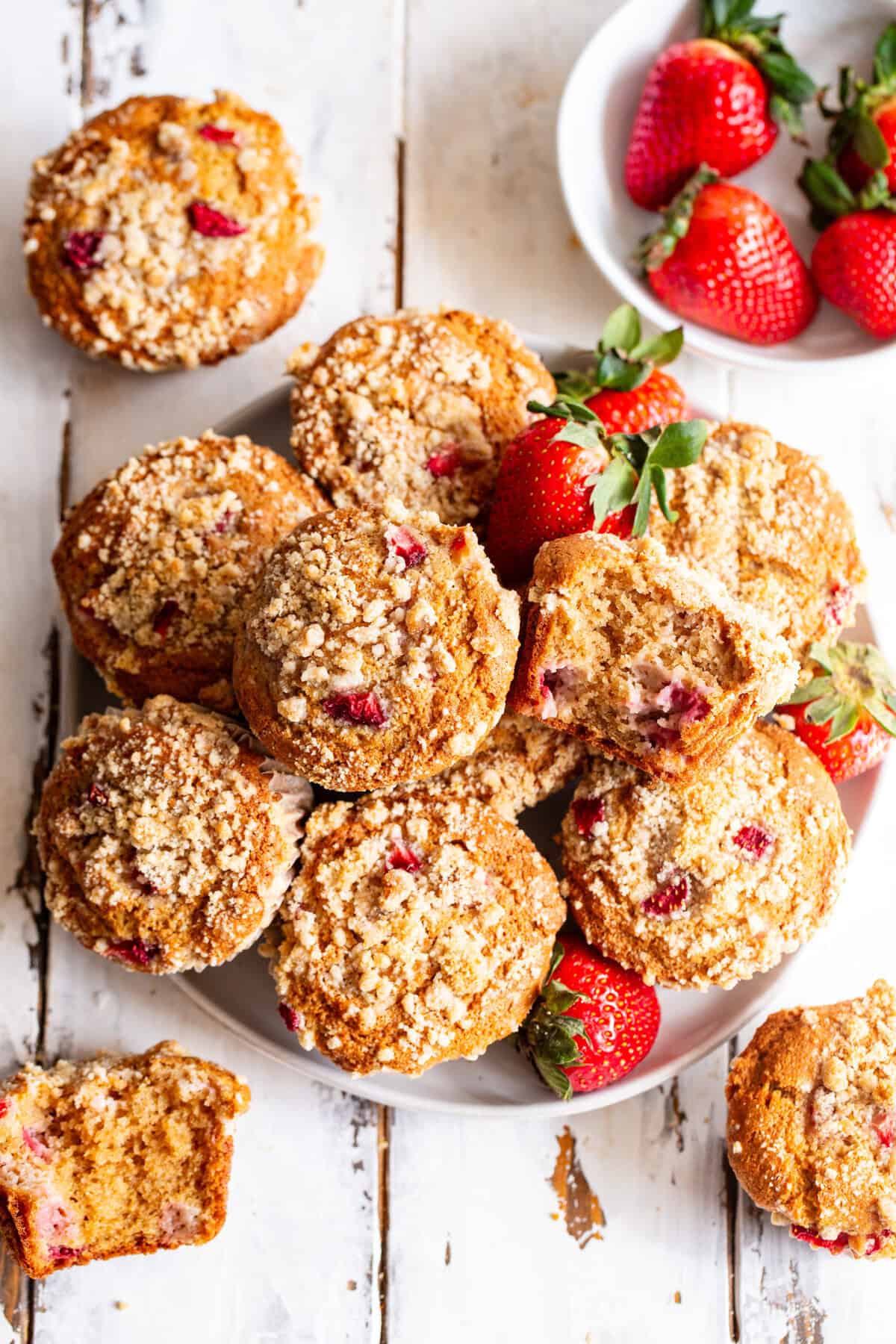 Soft, moist almond flour strawberry muffins made in one bowl! These easy gluten-free strawberry muffins are naturally sweetened and perfect for breakfast or snacks.