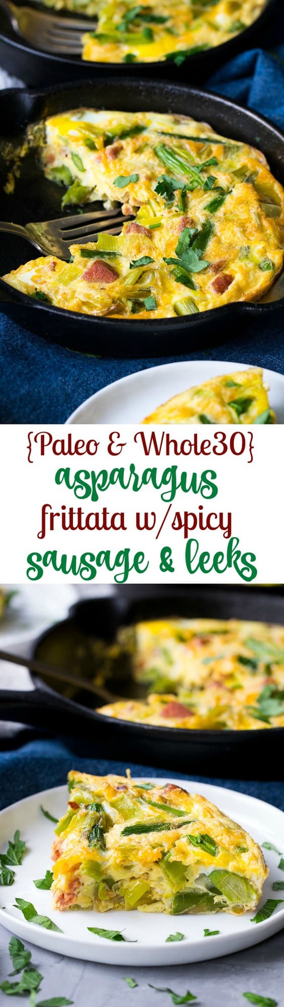 Asparagus Frittata with Spicy Sausage and Leeks {Paleo & Whole30}