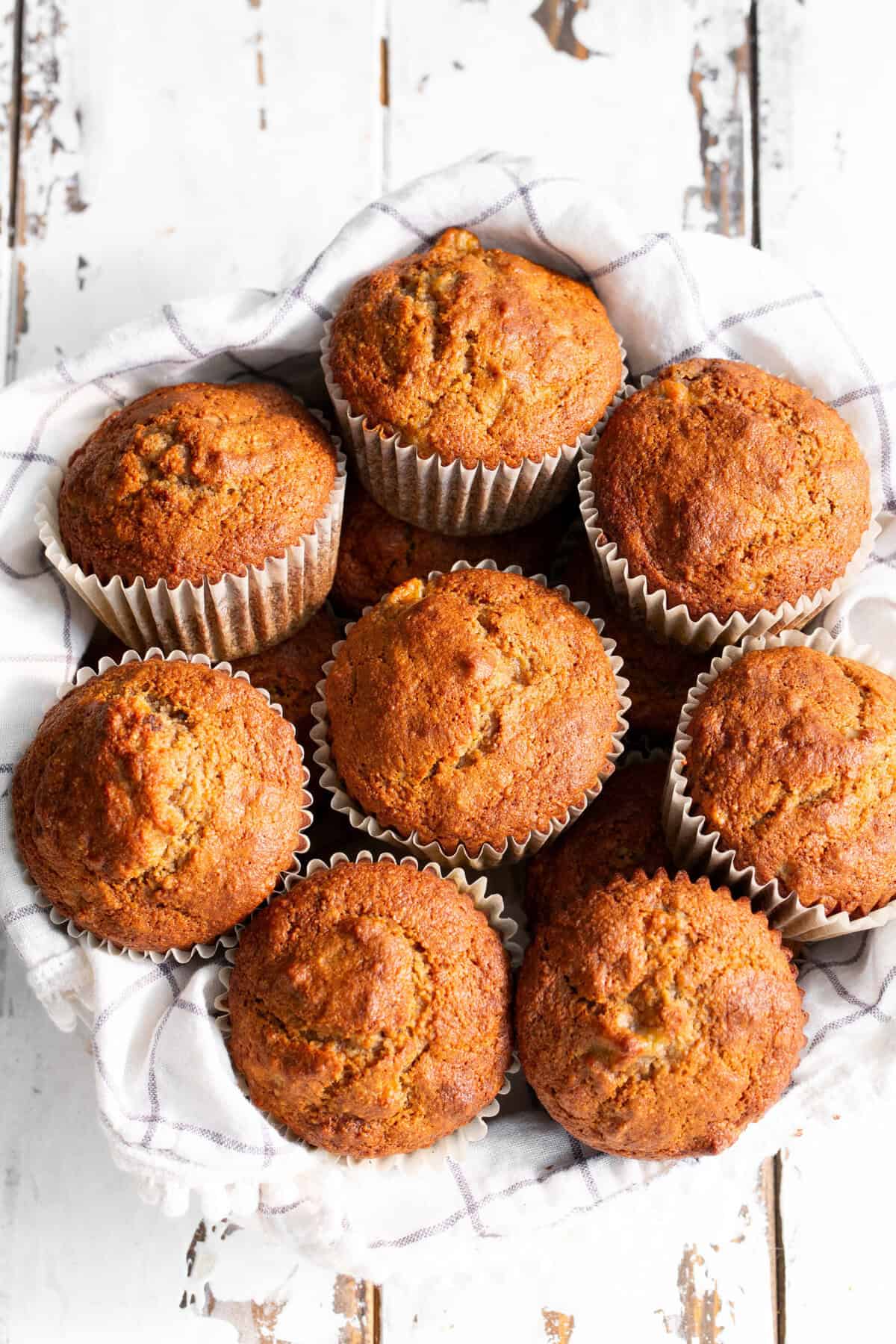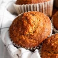Streusel or crunchy topping – you can add a streusel topping to these muffins by using the topping recipe for my banana nut coffee cake.