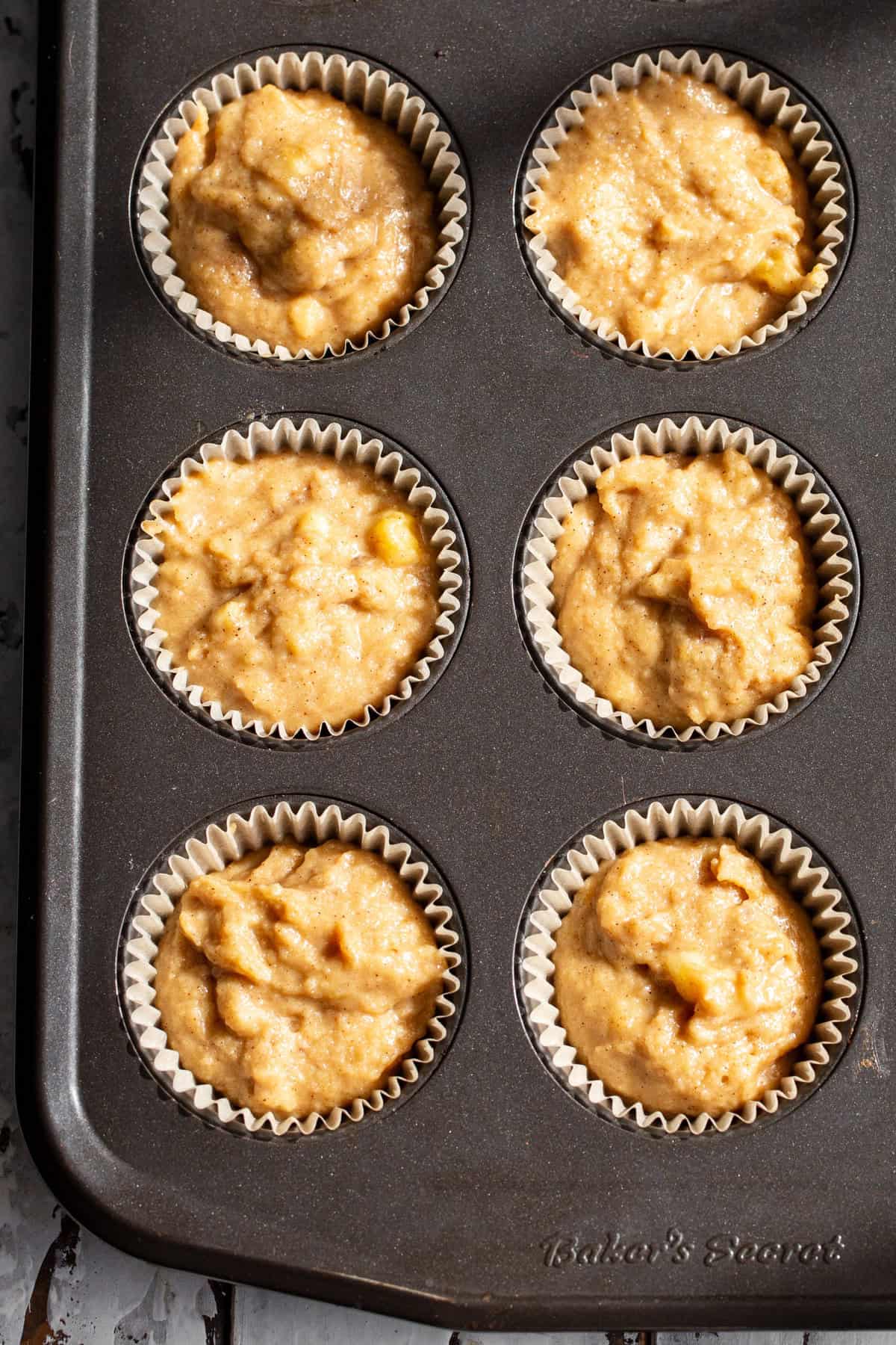 Preheat your oven to 400°F and line a 12 cup muffin pan with parchment liners.