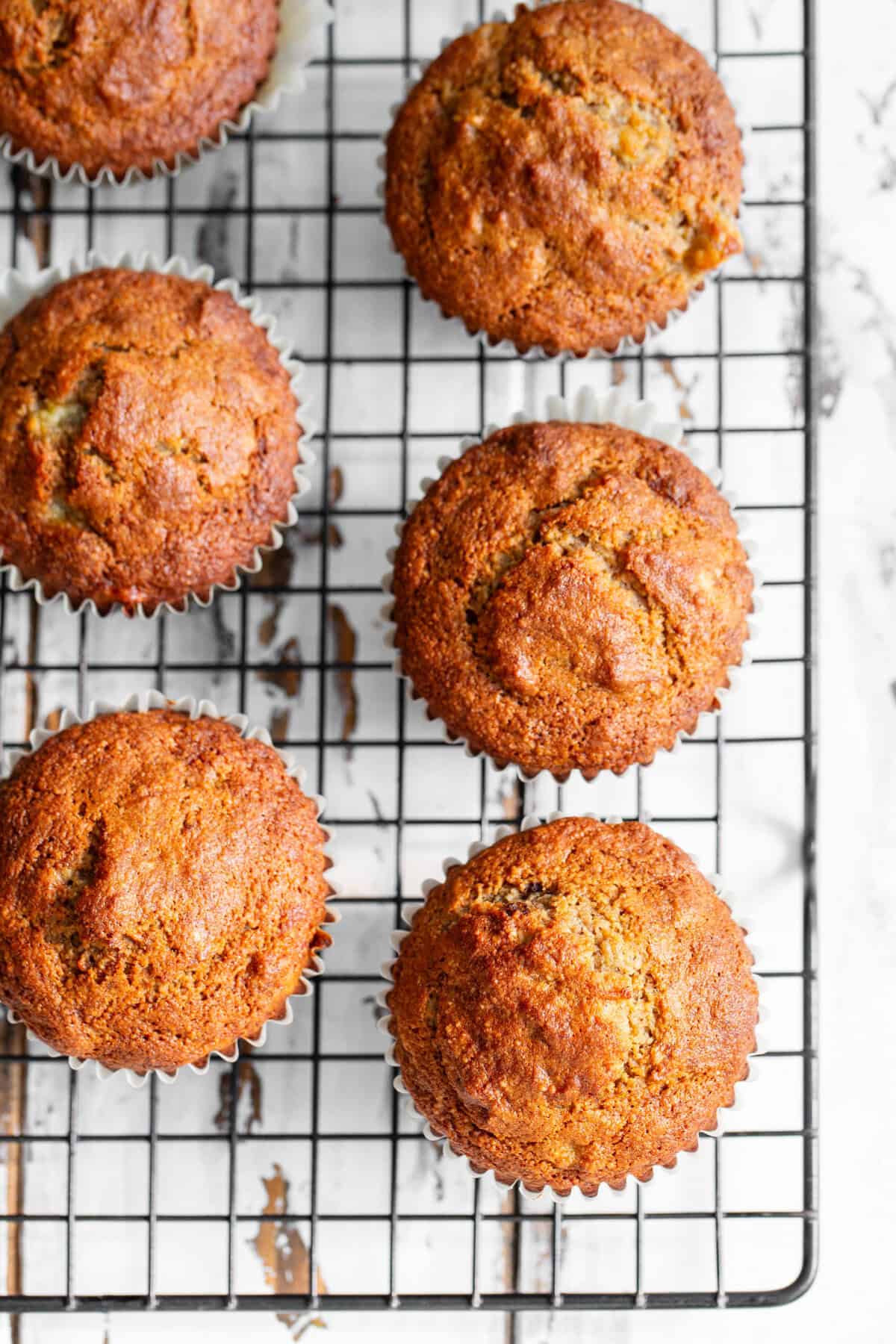 Cool the muffins in the pan on a wire rack for 5-10 minutes, then remove from the pan, keeping them in the liners, and continue to cool on the wire rack until fully cooled, about 20-30 minutes.
