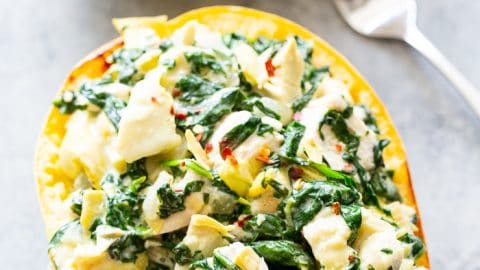 Chicken Spinach Artichoke Spaghetti Squash {Paleo, Whole30}