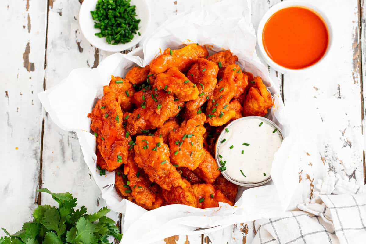 With the same easy buffalo wing sauce as my original version but with a much faster cook time, I’m very much sold on my boneless version.