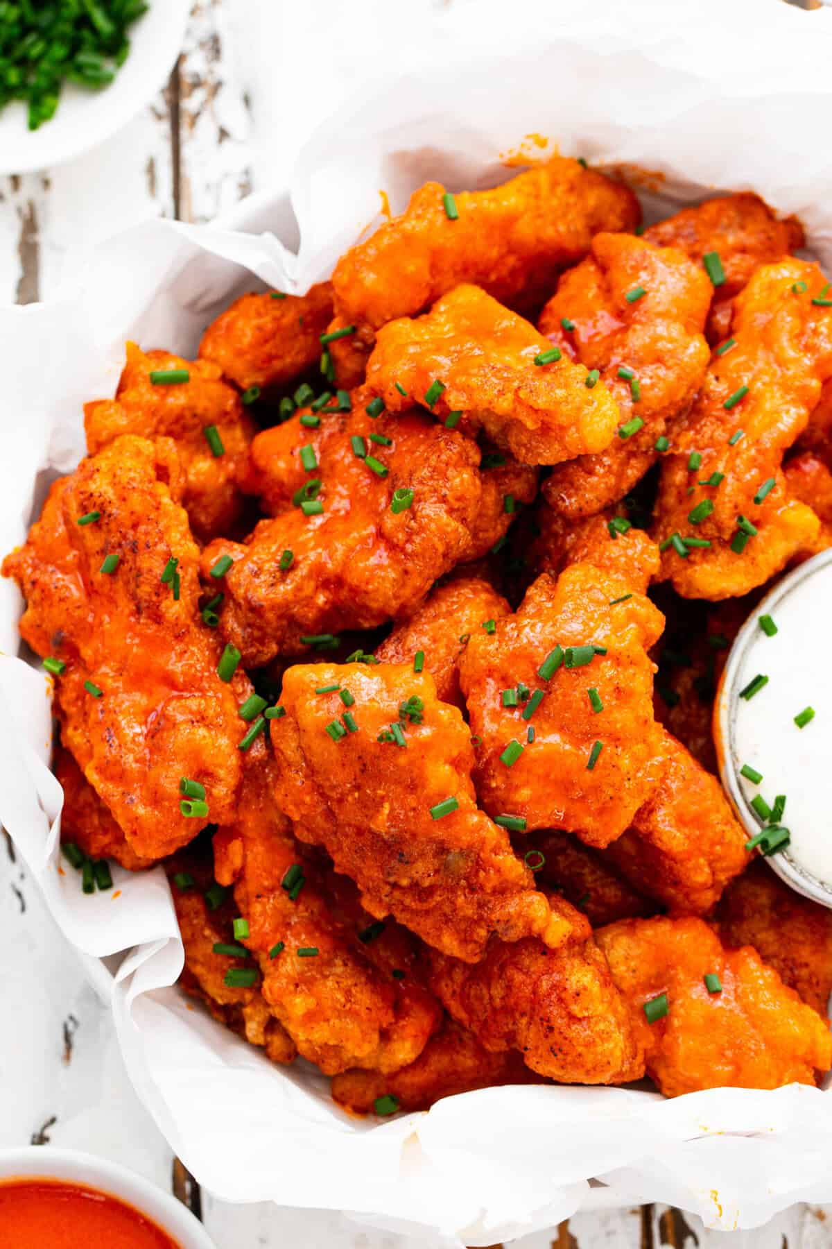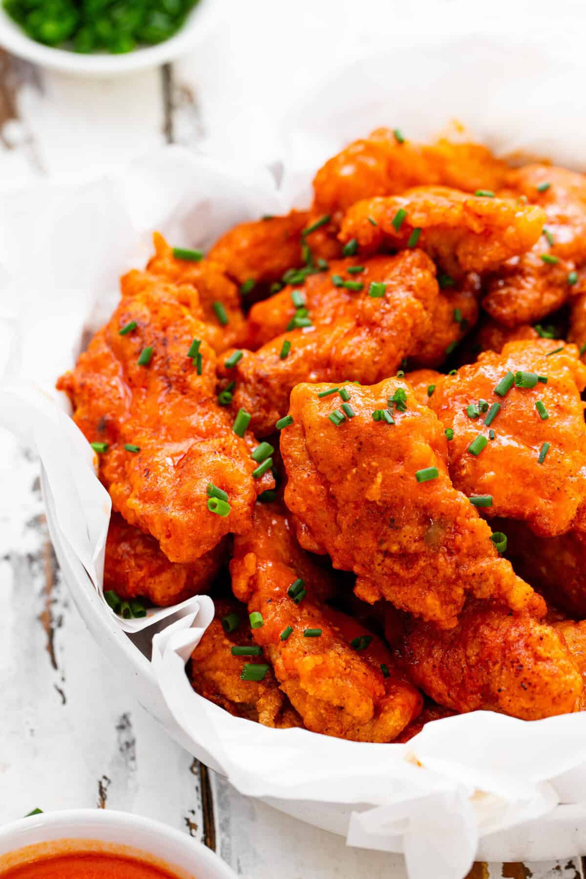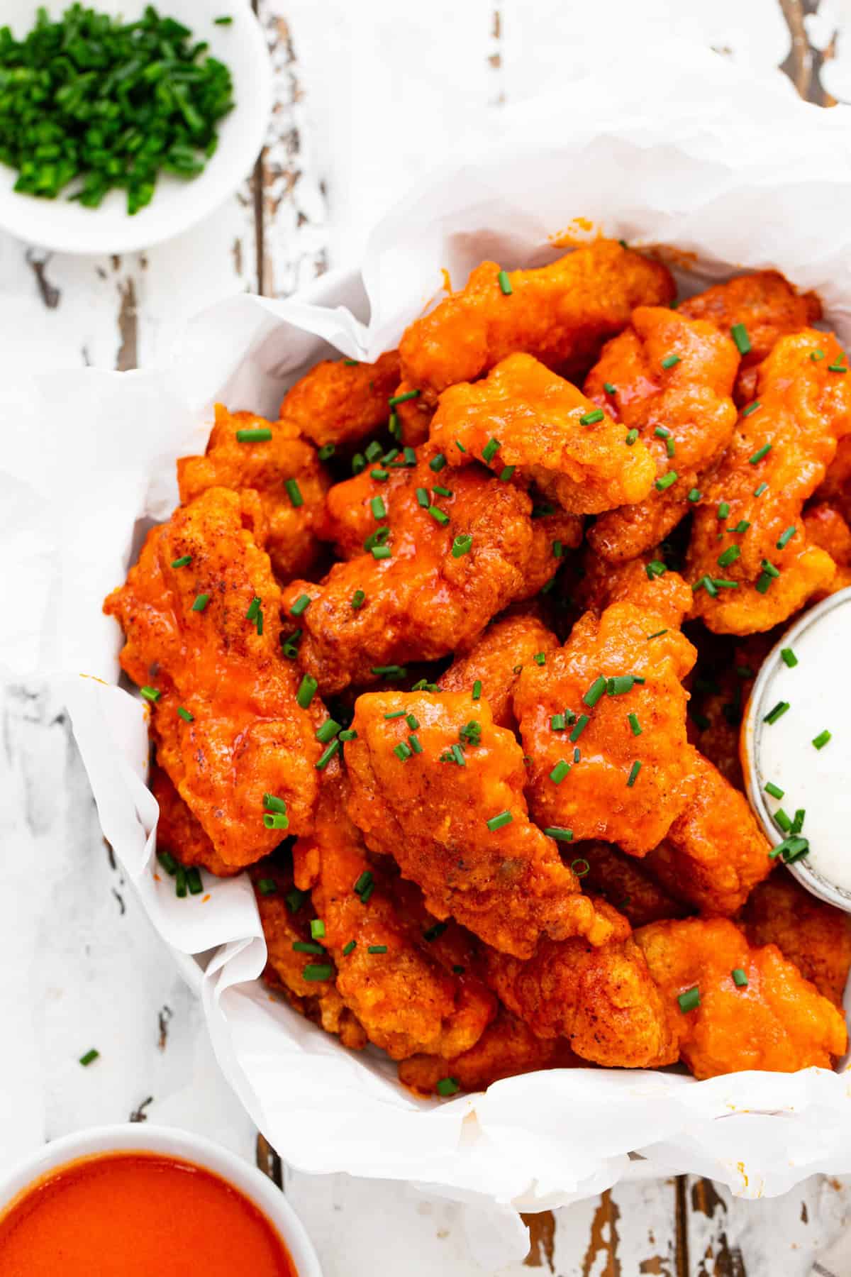 While I absolutely love my crispy baked buffalo wings, I couldn’t believe I neglected to create a boneless version after all these years!