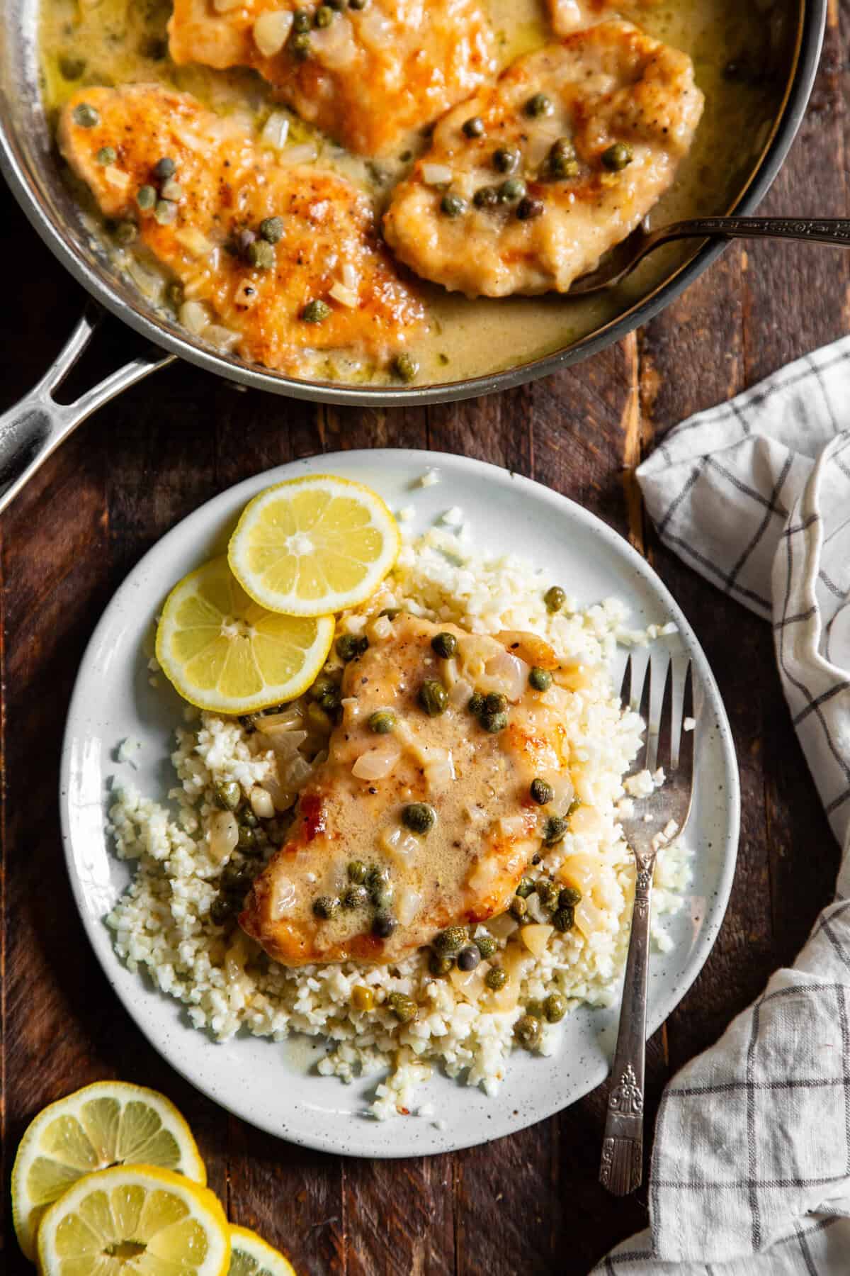 Whether you’re cooking for a busy weeknight or looking for a simple but impressive dinner, this healthy chicken piccata comes together quickly and pairs perfectly with everything from cauliflower rice to roasted vegetables.
