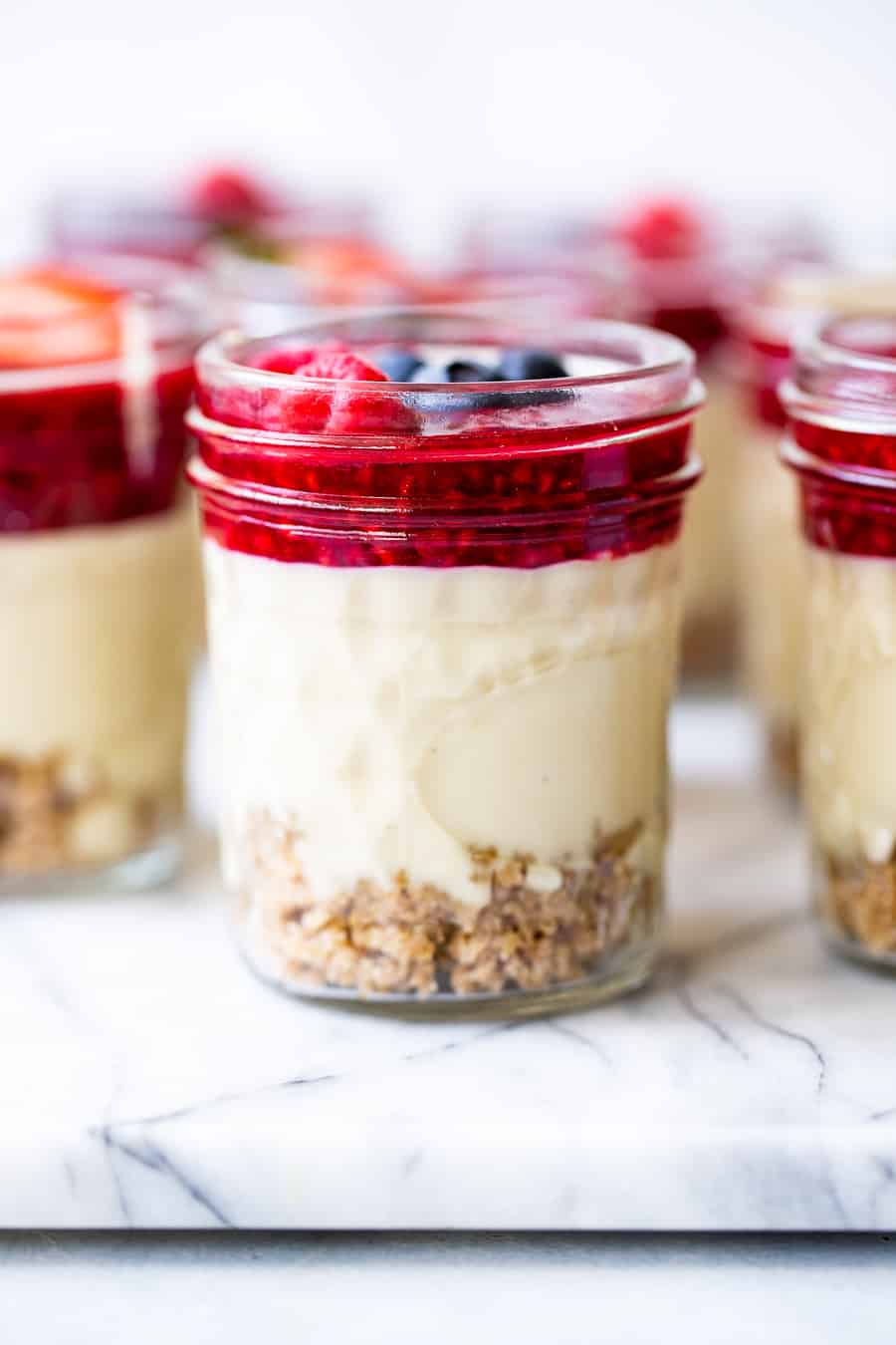 You can serve the cheesecake right away, but it’s also perfect to store for later since they’re already in jars!