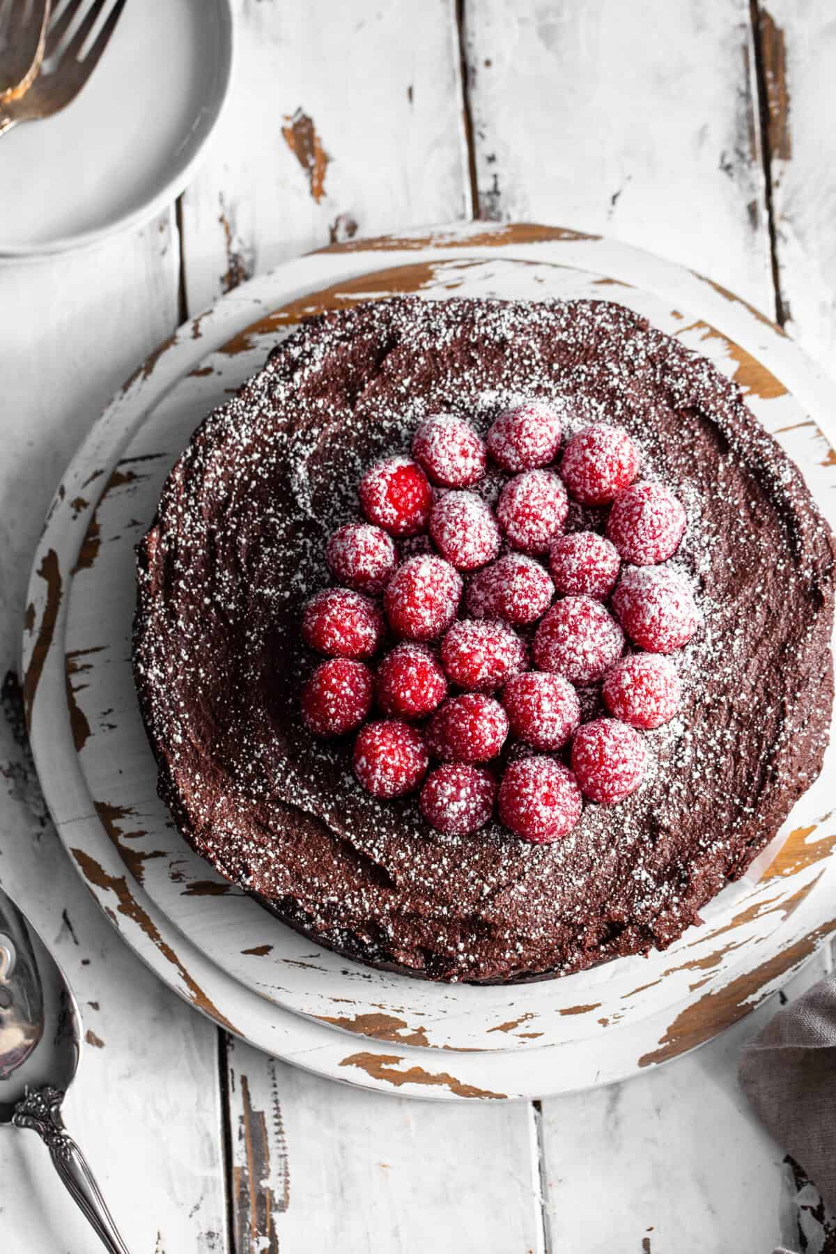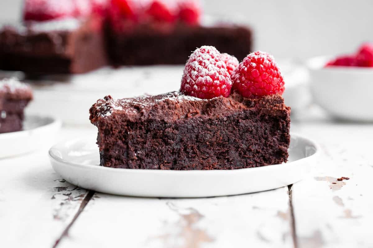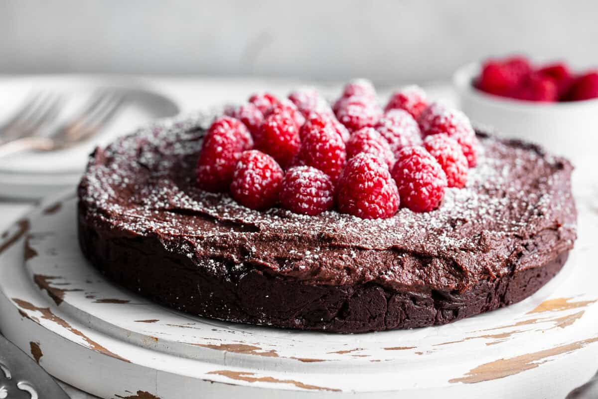 Since the cake uses no flour to begin with, it’s easy to turn a traditional flourless chocolate cake paleo.