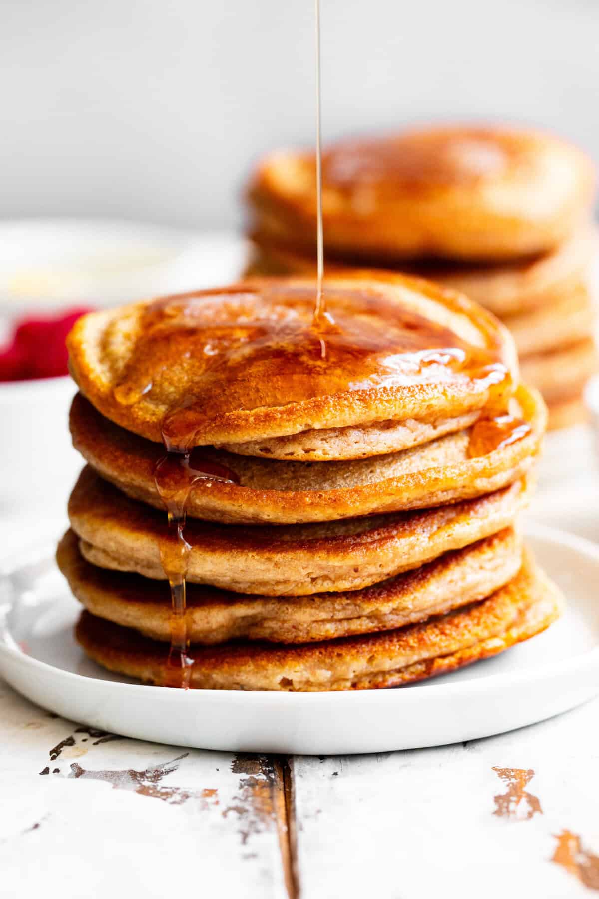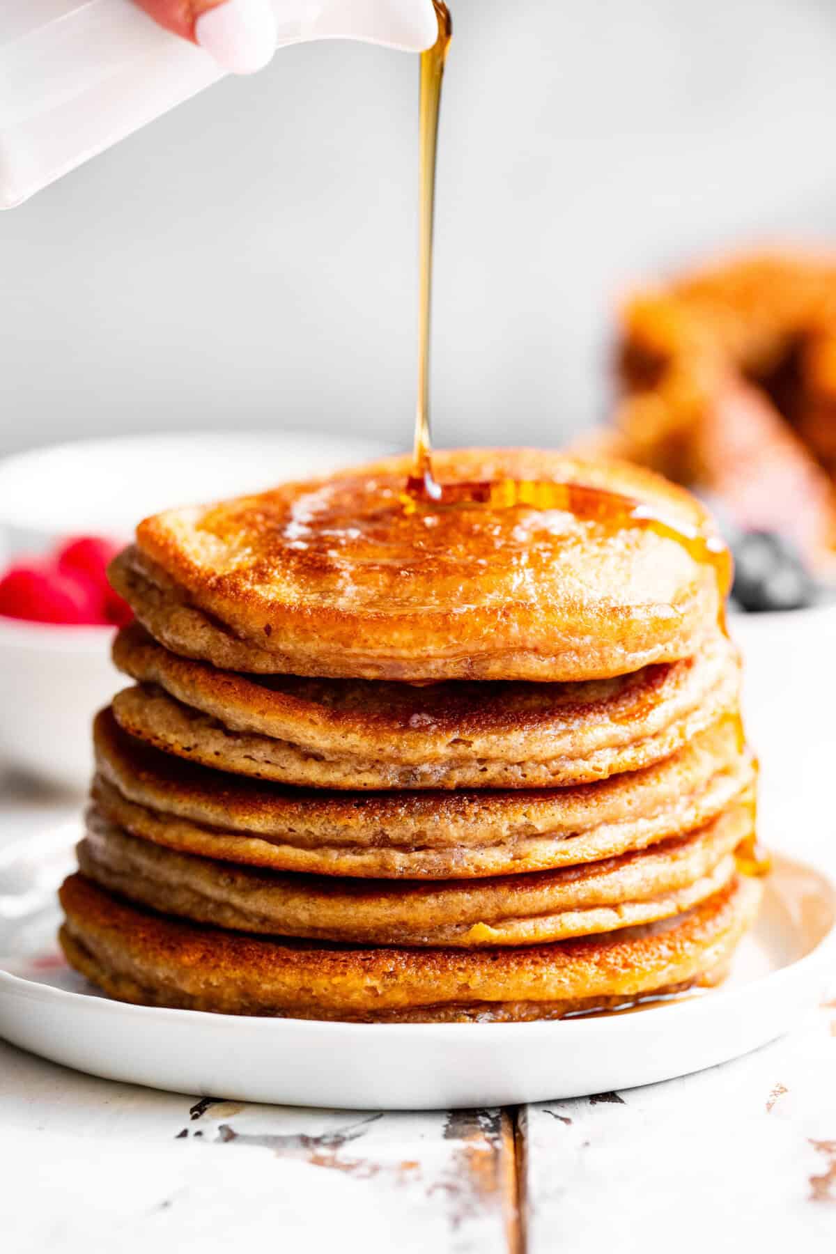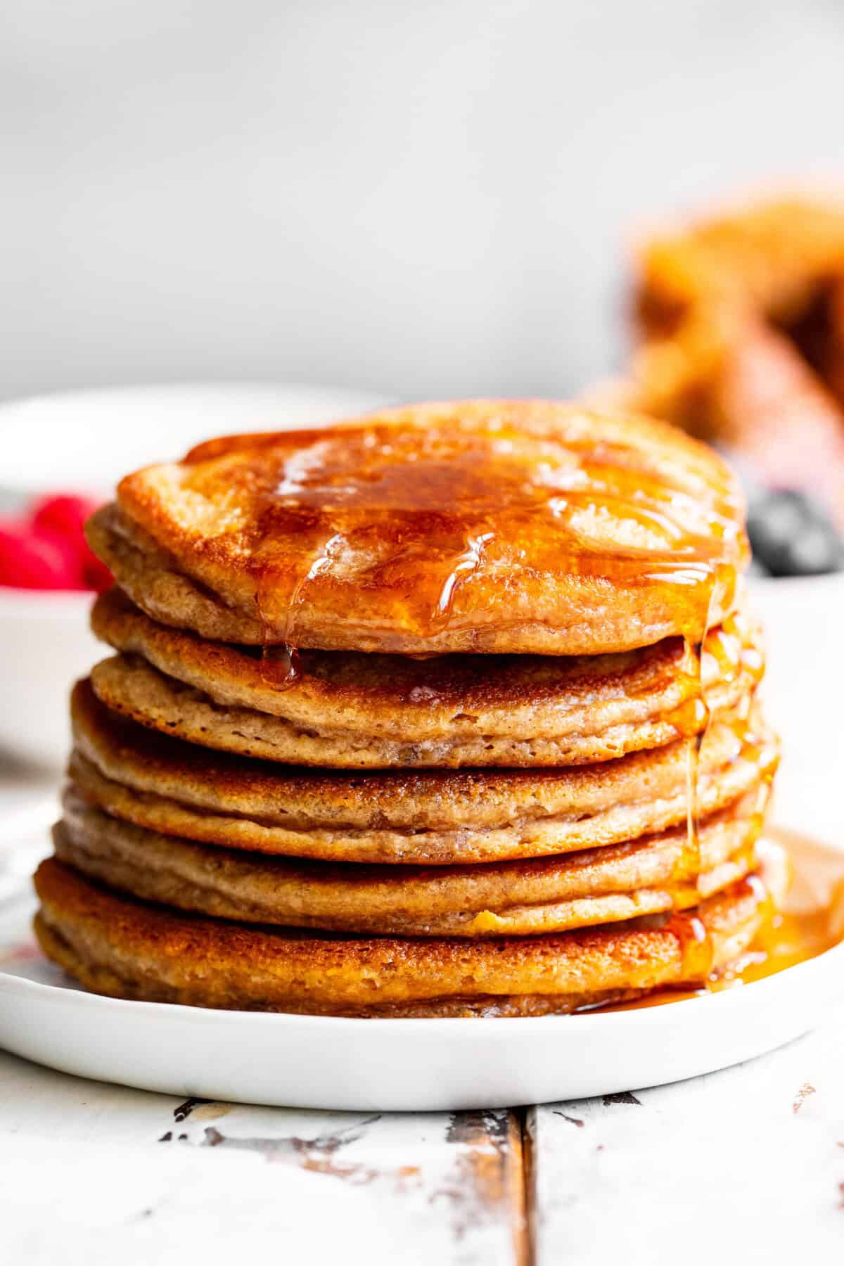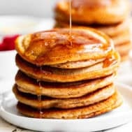 Once you try them, they’re sure to become a regular in your kitchen! They’re especially amazing topped with warm maple syrup and your favorite fresh fruit!