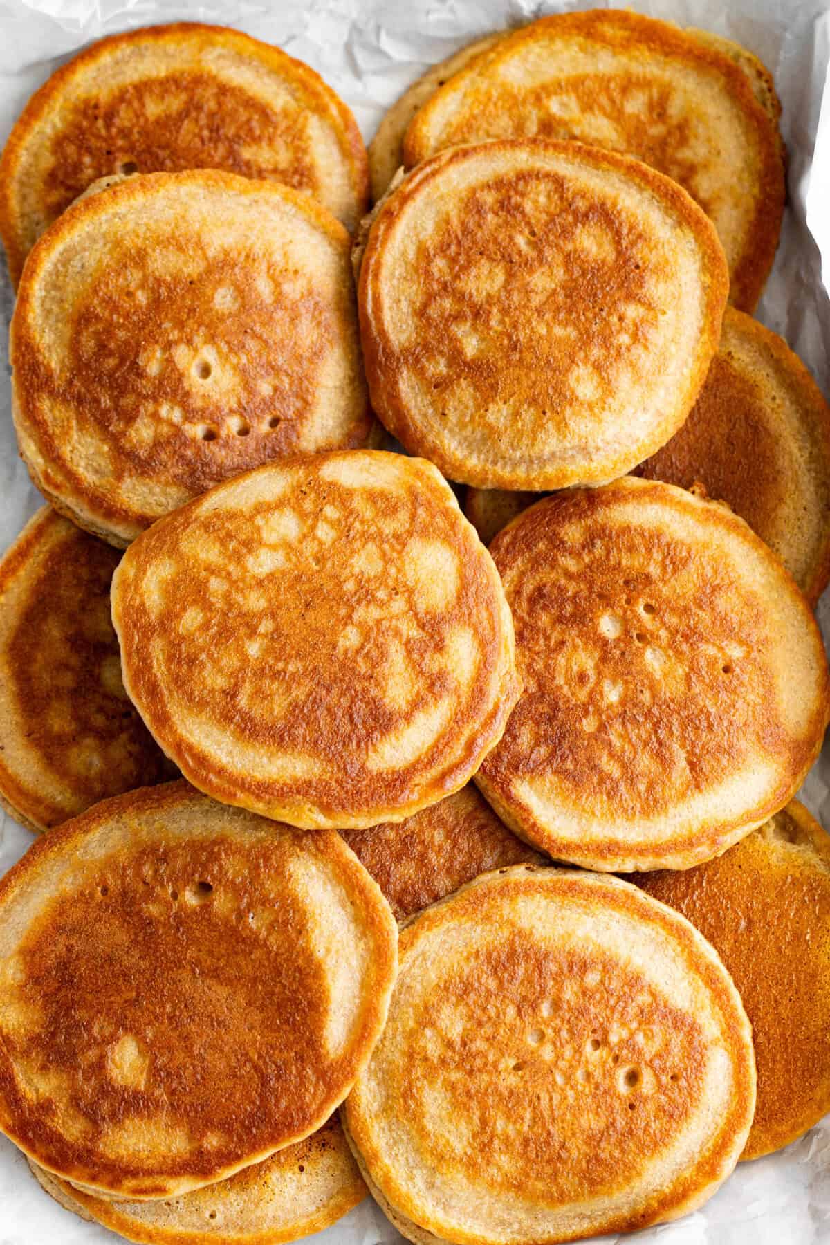 To freeze, place pancakes in a single layer, then transfer to a freezer-safe bag. Reheat gently in a toaster or skillet until warmed through.