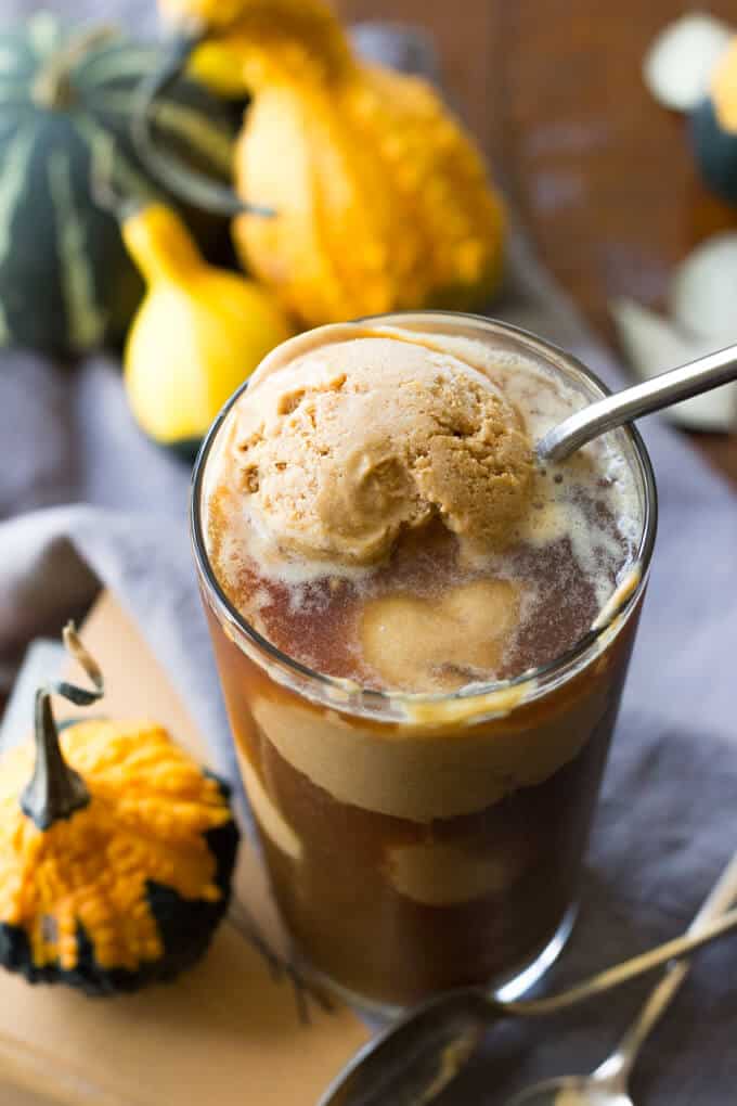 Pumpkin Pie Ice Cream Coffee Floats via Wicked Spatula