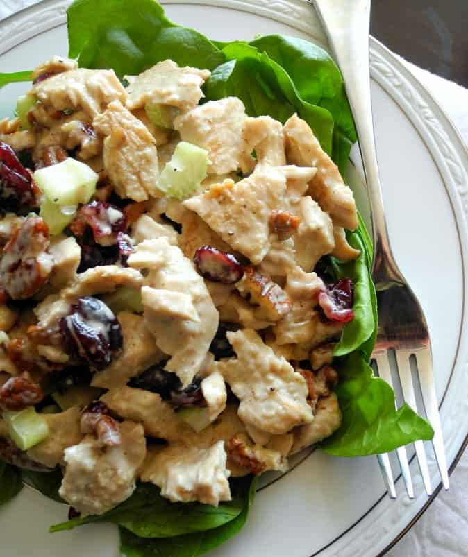 Also, unlike a cold chicken salad, you don’t have to plan this in advance, you can be spontaneous and spur of the moment and all that good stuff (don’t feel committed to serving it warm, though, it’s just as good cold!) You can make this with turkey cutlets or make good use of leftover roasted turkey (or chicken) for a quick meal.