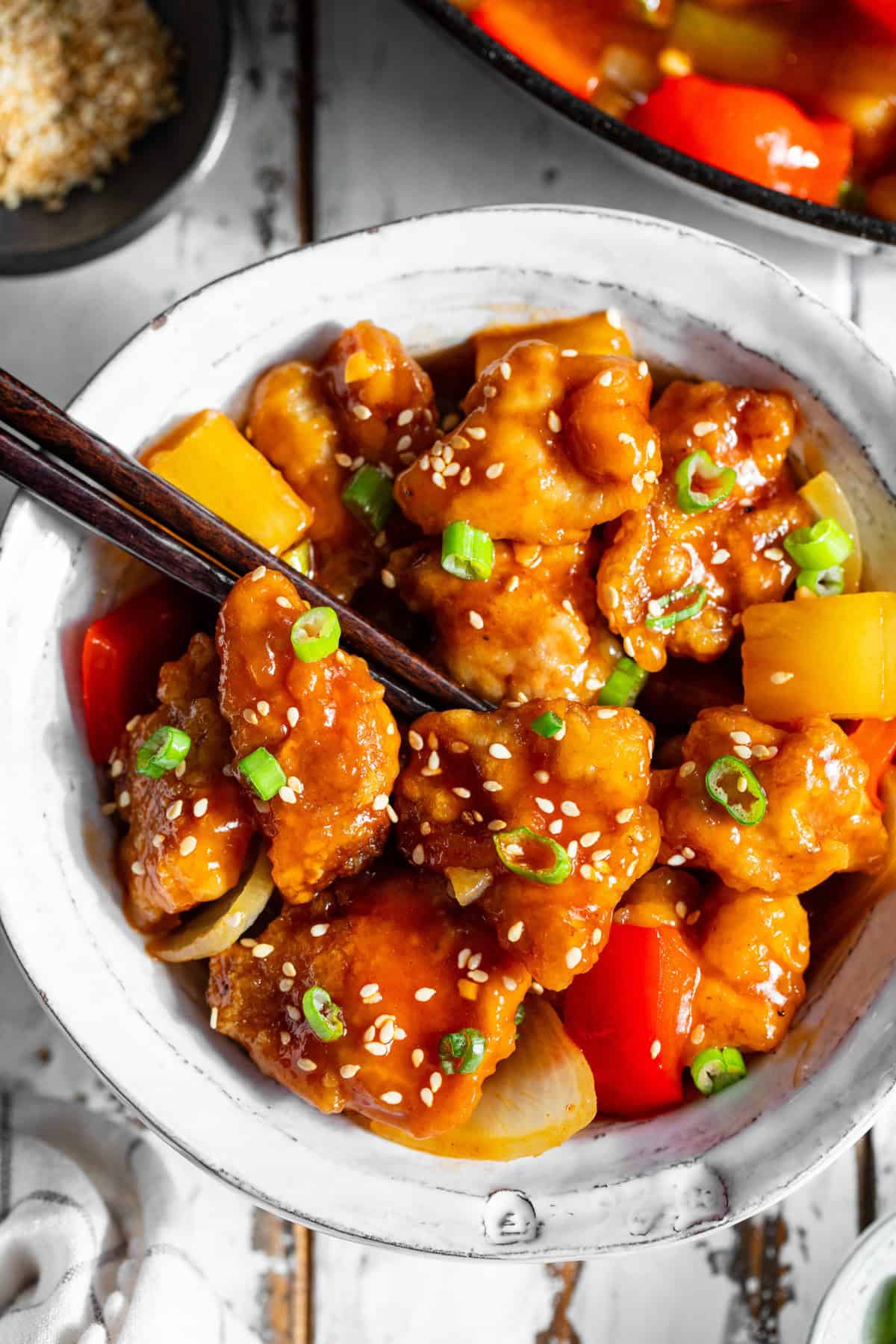 Sweet and sour chicken is one of the most popular takeout dishes for a reason — crispy chicken coated in a sticky, sweet and tangy sauce with pineapple and peppers is hard to resist.